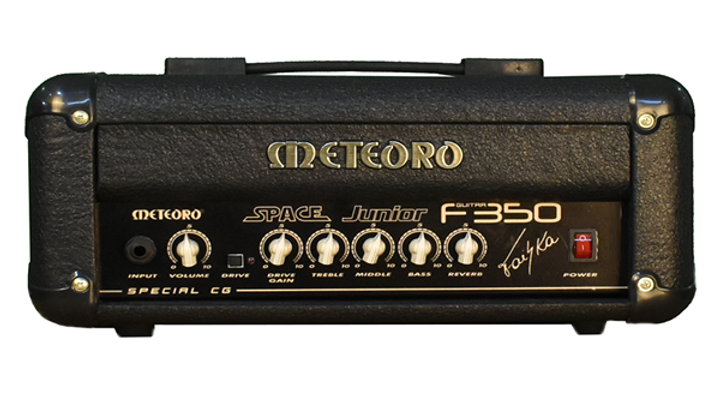 O SPACE JR F350 é um cabeçote para guitarra, com reverb digital e saída para ligar uma caixa externa. Foi desenvolvido em conjunto com o grande guitarrista FAISKA e usando a mais alta tecnologia. Todo o projeto foi testado passo a passo até o final e aprovado por ele para que pudesse ter o timbre e a qualidade dos amplificadores da Meteoro.