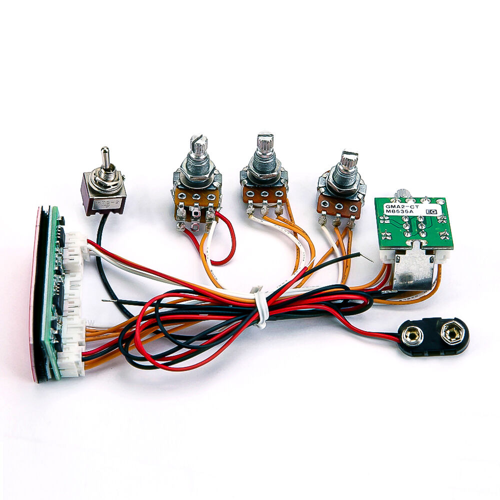 Pré-amplificador (Circuito) Ativo de 2 Bandas para Contrabaixo Modelo: GMA2CT Equalizador de 2 bandas Blend de captadores + Volume Master Chave push-pull (ativa/passiva) Coil Tap (divisão de bobina) Jack de saída incluso Instrumentos compatíveis:Baixo