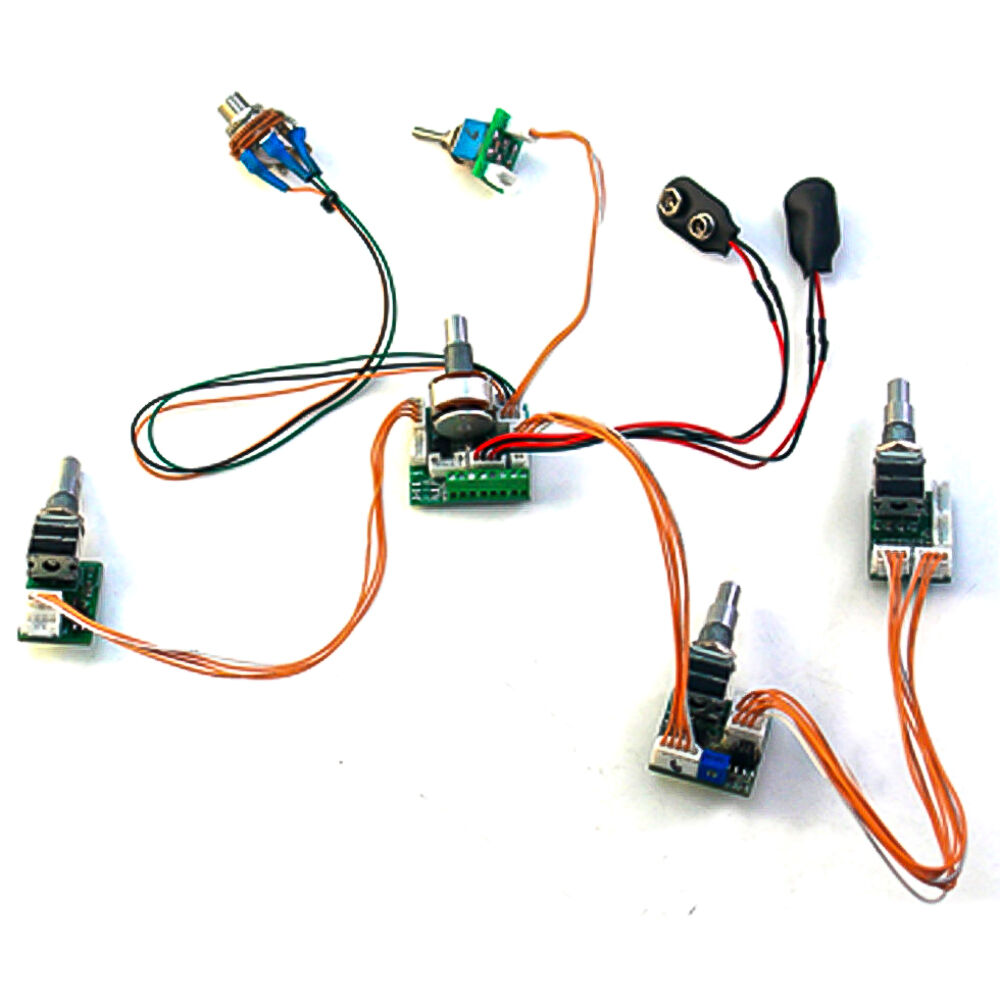Equalizador (Circuito) passivo com controle de tom e ativo de 4 bandas Pré-amplificador interno modular multibanda de alto desempenho para contrabaixo, compatível com sistemas ativos e passivos, com fácil instalação sem necessidade de solda. Recursos: 2 controles de volume (um para cada captador) ou 1 controle de blend de captadores e volume master 1 controle de tom passivo Chave Ativo/Passivo Controle de Grave (Bass) Controle de Médio Grave (Low Mid) Controle de Médio Agudo (Hi Mid) Controle de Agudo (Treble) Cor:N/A