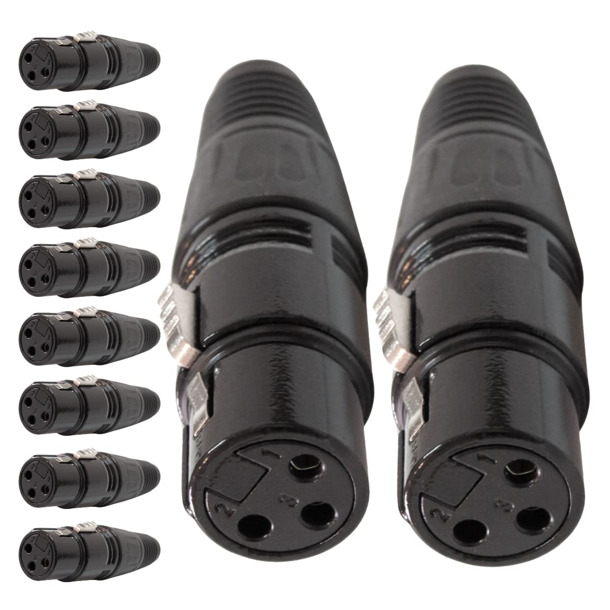 O Jack Cannon Corpo Preto Metálico Storm oferece durabilidade e segurança para conexões de áudio, sendo ideal para montagem de cabos em ambientes profissionais e residenciais.