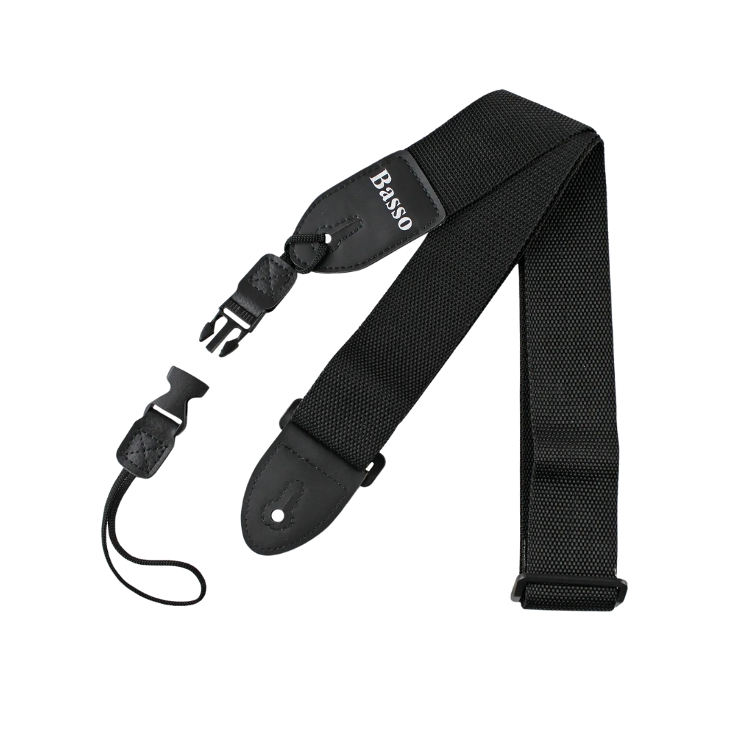 É composta de CORREIA (QRV-04) + CORDÃO (QRV) que consiste num exclusivo sistema de engate-desengate (Quick Release) para engatar no braço dos VIOLÕES QUE NÃO POSSUEM UMA DAS ROLDANAS para engatar a correia.