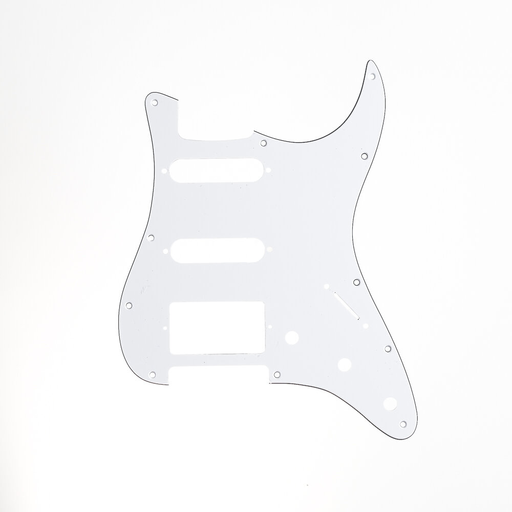 Escudo para Guitarra, estilo Stratocaster para 1 Humbucker e 2 Singles (HSS), modelo Am Strat, 2.3mm de espessura e 11 furos, 3 camadas e acabamento em Branco, Spirit Guitar Parts - 110-WH. Quantidade de camadas:1