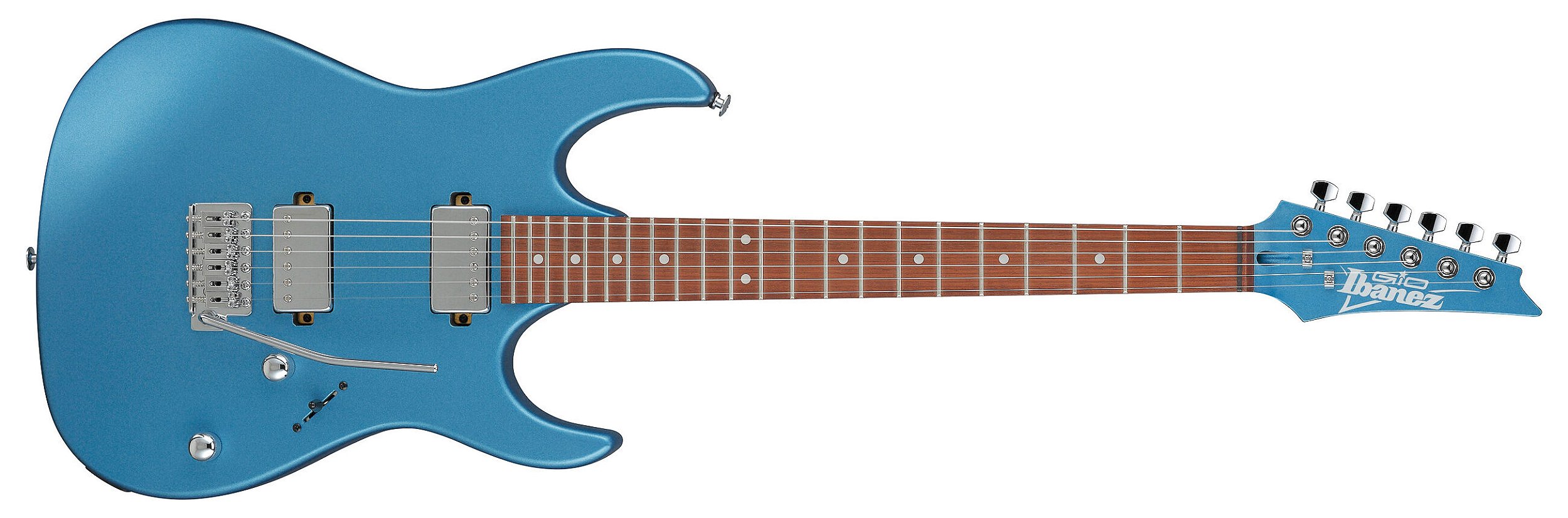 Um instrumento não precisa ser caro para ter excelente sonoridade. A série GIO foi desenvolvida para músicos que desejam qualidade e desempenho em uma linha super acessível. Design arrojado, visual atraente, recursos de ponta, para uma performance muito além das demais opções de mesmo custo benefício, com o tradicional padrão de qualidade que você só encontra na Ibanez. Guitarra de 6 cordas Ibanez RG Series modelo RG GIO GRX120SP-MLM, corpo em Poplar com acabamento Metallic Light Blue Matte (Azul Metálico Claro Fosco), ponte T106 e captação Classic Elite. - Construção: Braço parafusado - Corpo: Poplar - Escala: Jatobá com marcação dot inlay branca - Braço: Maple - Tamanho da escala: 25.5" - Trastes: 22 Medium - Ponte: T106 - Hardware: Cromado - Captação: Classic Elite (braço) e Classic Elite (ponte), todos Passivos em Cerâmica - Controles: 1 Volume + 1 Tone + Chave Seletora 5 Posições - Afinação de fábrica: 1E,2B,3G,4D,5A,6E - Calibre das cordas: .009/.011/.016/.024/.032/.042 * Afinação de fábrica e Calibre das cordas informadas apenas como referência ** Especificações sujeitas a alterações sem aviso prévio Escala: 648mm/25.5" a : Largura - 42mm no NUT b : Largura - 57mm no 24F c : Espessura - 19.5mm no 1F d : Espessura - 21.5mm no 12F Raio: 305mmR