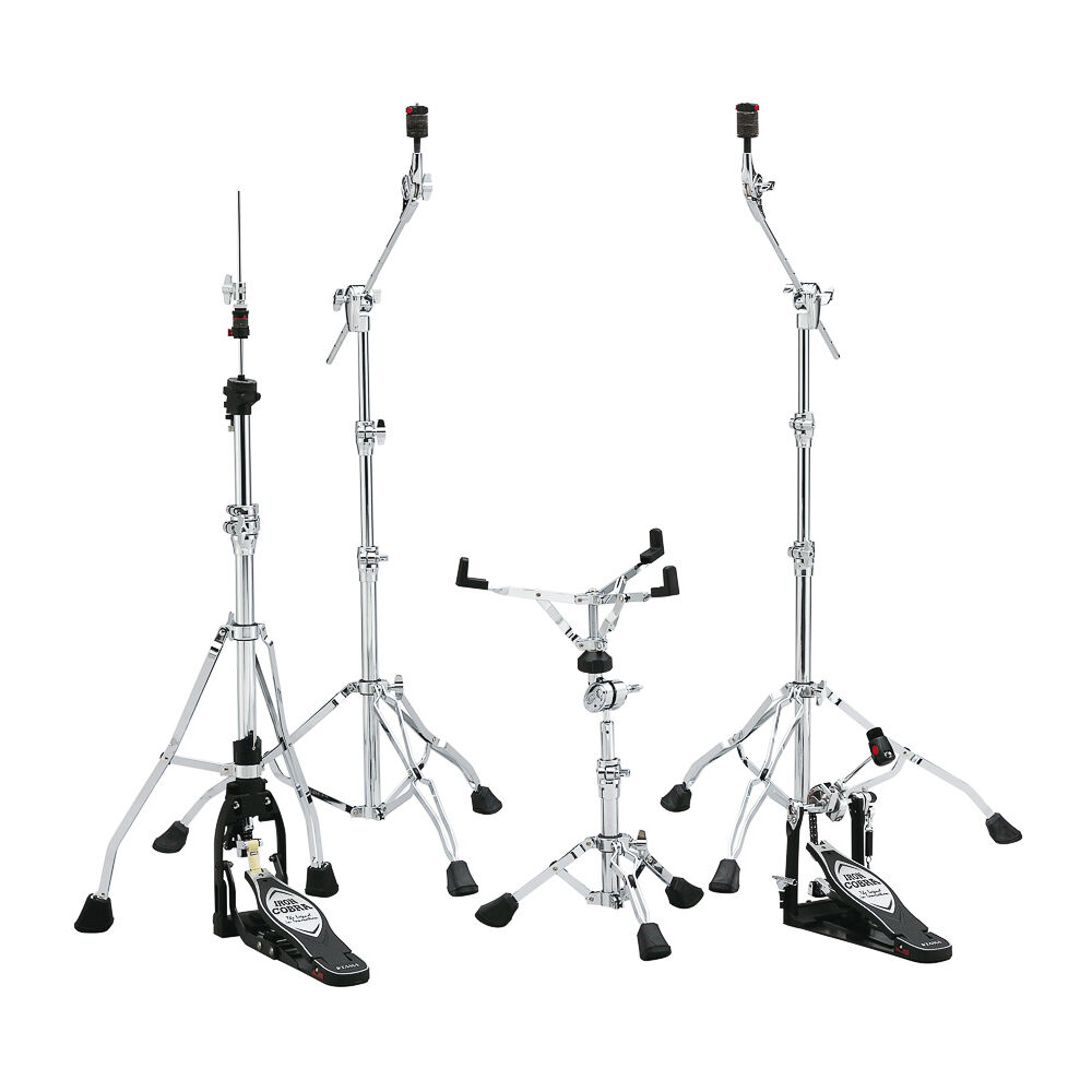 Kit de ferragens Tama Iron Cobra 900 para bateria inclui: - HS800W Estante de caixa Roadpro - HC83BW Estantes girafas Roadpro (x2) - HH905D Máquina de chimbal Iron Cobra - HP900PN Pedal simples Iron Cobra?