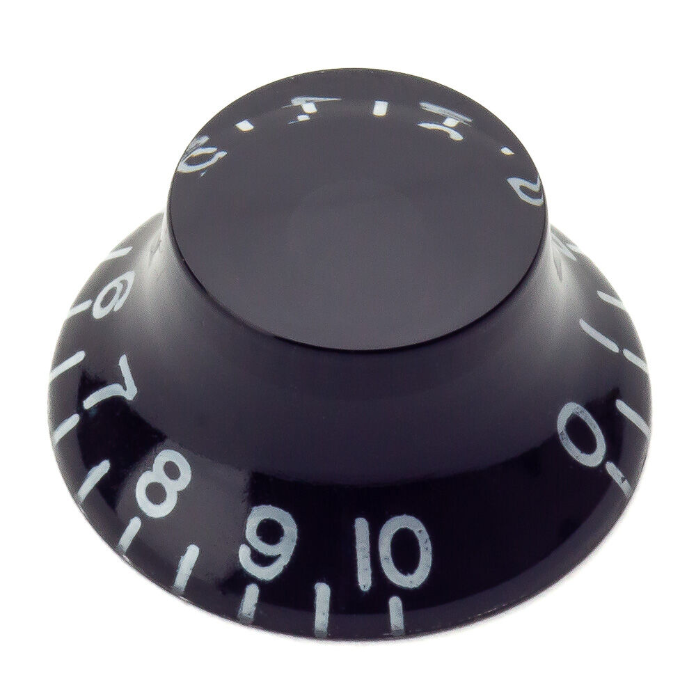 Knob (botão) de plástico translúcido em formato de chapéu e acabamento preto, 4 unidades, comumente usado nos modelos de guitarras da Gibson e entre outras. Spirit Guitar Parts - KLS-BK. Modelo:KLS-BK