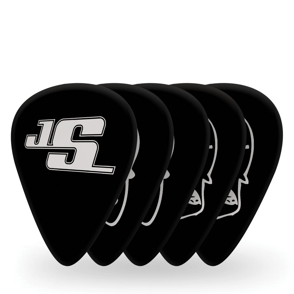 As palhetas JS Design são feitas a partir de celuloide de alta qualidade e estão disponíveis nas cores branca com desenhos pretos e preta com desenhos prateados. Cada pack vem com um dos dez designs originais diferentes de Joe Satriani.? Origem:China