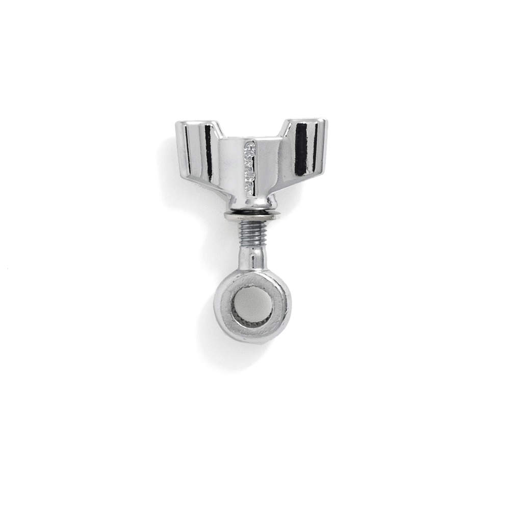 Porca Borboleta com Anel para Percussão, inclui arruela, parafuso e porca borboleta, formando o conjunto a ser fixado a hastes de 9,5mm a 10,5mm de diâmetro. Gibraltar SC-EB. Cor:Cromado