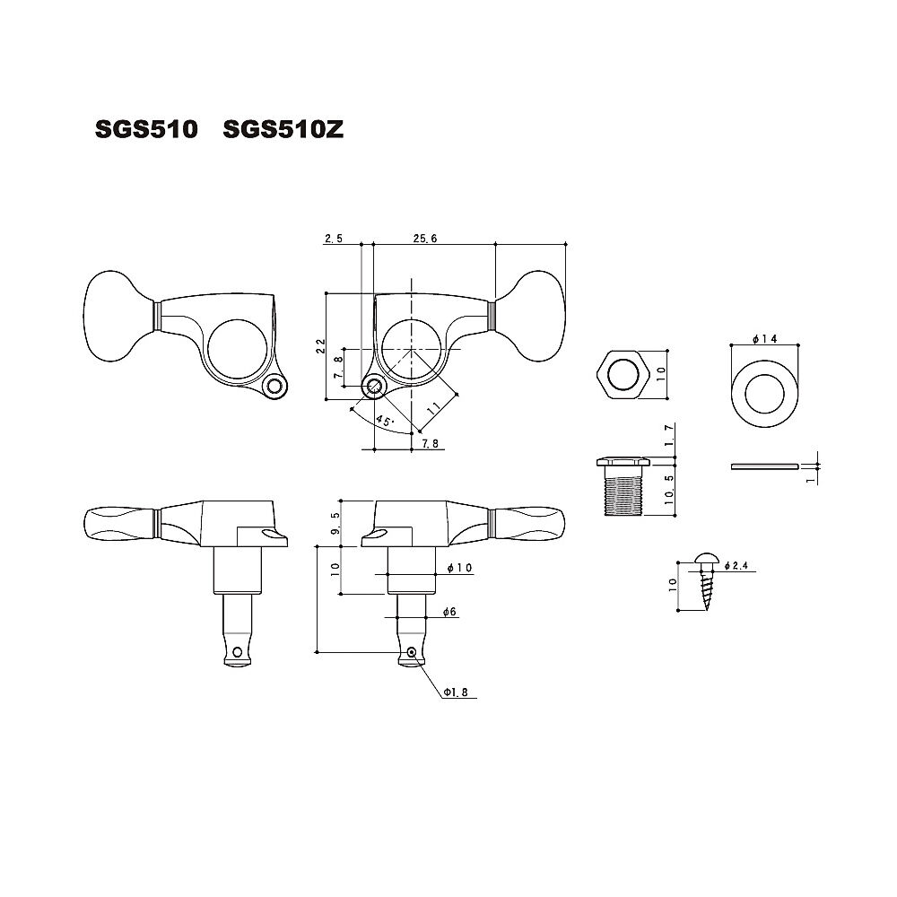 Tarraxa para Guitarra Blindada (L3+R3) em acabamento cromado, 6 unidades, acompanha parafusos, Gotoh SGS510-A07/WS C.?