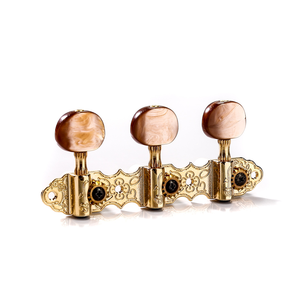 Tarraxas para Violão com hardware em acabamento dourado e botão marrom perolizado, Spirit Guitar Parts - J800-GD-R1L1. - Engrenagens com precisão de 15:1? Disposição das tarraxas:R1/L1