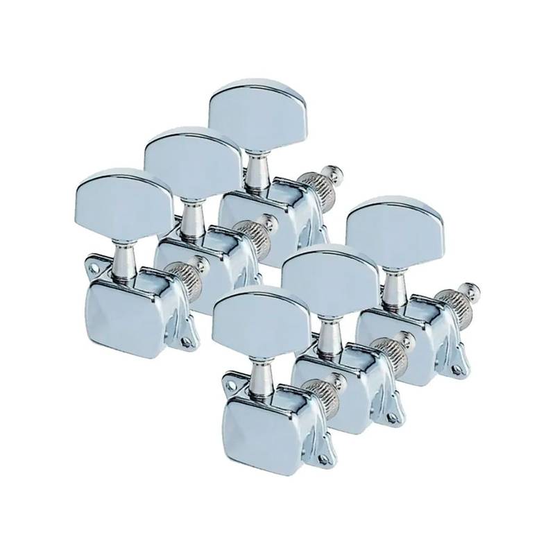 Configuração 3+3: Ideal para guitarras com seis cordas distribuídas em três tarraxas à direita e três à esquerda, garantindo simetria e facilidade de uso.