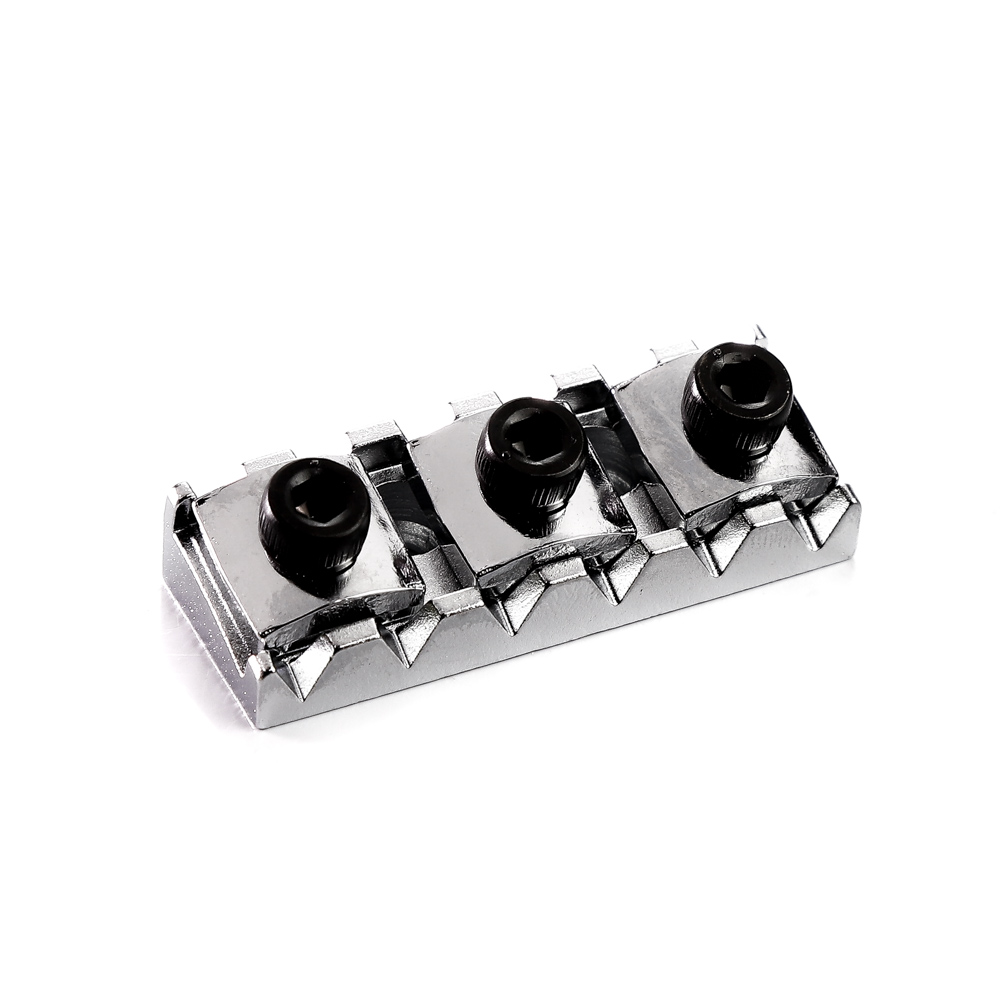 O Trava Cordas Gotoh GHL-2 é fixado pela frente do braço da guitarra, feito em metal com acabamento Chrome (cromado), largura de 43mm e raio de 400mm.
